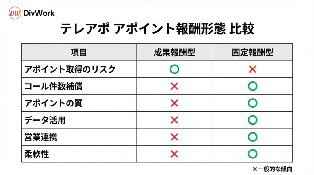 テレアポ代行を検討する際、よく比較されるのが「固定報酬 テレアポ」と「成果報酬 テレアポ リスク」です。結論から言うと、受注につながる新規開拓を“仕組み化”したいなら「テレアポ代行 固定報酬」がおすすめです。理由は、固定報酬の方が「実行→検証→... -